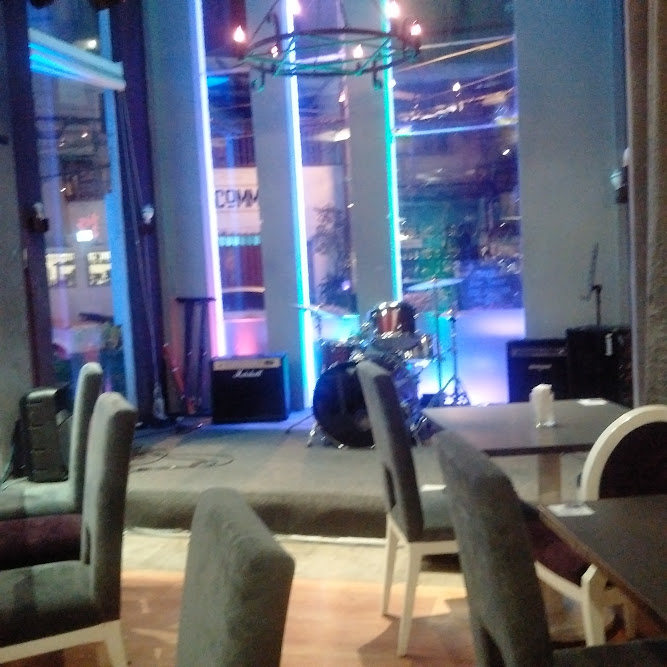 | Pan to the right and you see the stage for the band. Big open windows. Very classy |